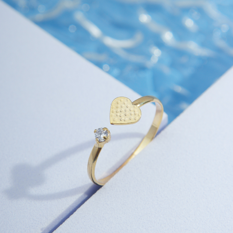 O nosso Anel Regulável de coração com zircônia da Luane Acessórios é a definição de delicadeza e elegância. Disponível nas versões banhado a ouro 18k, seu design minimalista e atemporal é perfeito para compor desde looks casuais até produções sofisticadas. Um acessório versátil e indispensável para quem busca beleza e sofisticação em cada detalhe.